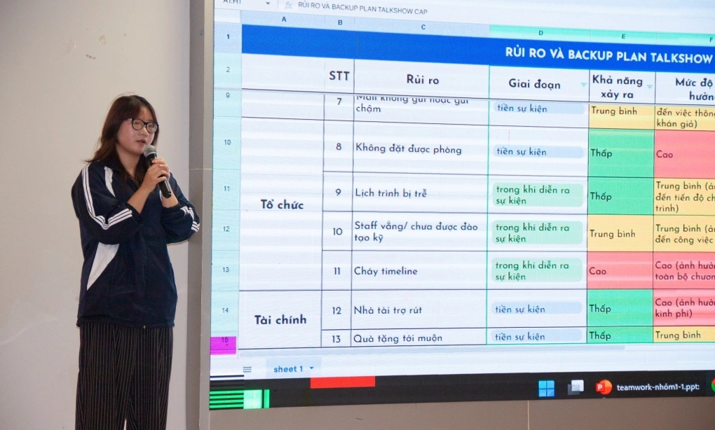 Ứng viên thuyết trình trong vòng làm việc nhóm của Câu lạc bộ về khoa học dữ liệu Actuary Pioneers, trường Đại học Kinh tế Quốc dân, tháng 11/2024. Ảnh: CAP