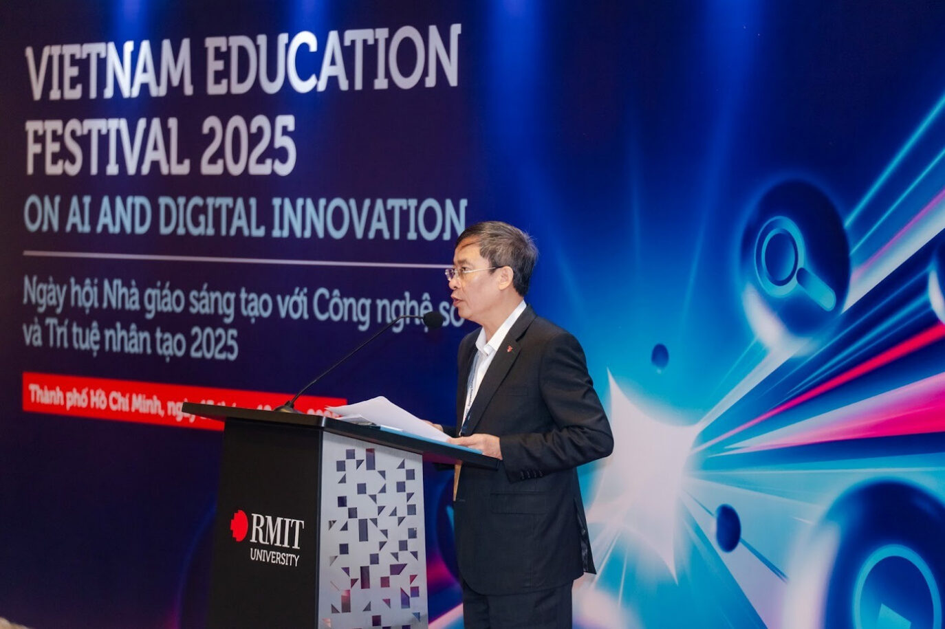 Phát biểu khai mạc, Tiến sĩ Vũ Minh Đức, Cục trưởng Cục Nhà giáo và Cán bộ quản lý giáo dục (Bộ GD&ĐT), đánh giá cao tác động tích cực của ngày hội đối với nền giáo dục Việt Nam. Ông nhấn mạnh việc làm chủ công nghệ số, đặc biệt là AI, là chìa khóa then chốt để đột phá phát triển giáo dục – đào tạo theo Nghị quyết số 71-NQ/TW, góp phần hiện thực hóa Khung năng lực số dành cho người học, nhà giáo và cán bộ quản lý. Ông đồng thời ghi nhận sự đồng hành hiệu quả của Đại học RMIT Việt Nam và sự tham gia tích cực của đội ngũ giáo viên trên cả nước.