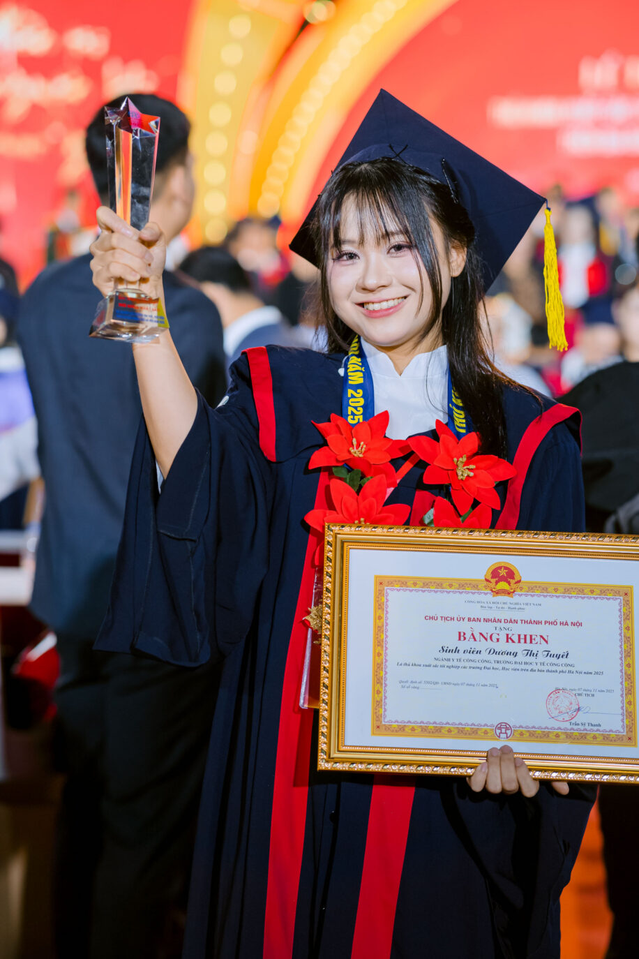 Dương Thị Tuyết vinh danh là một trong những thủ khoa xuất sắc tốt nghiệp các trường đại học, học viện trên địa bàn thành phố Hà Nội năm 2025. Ảnh: NVCC