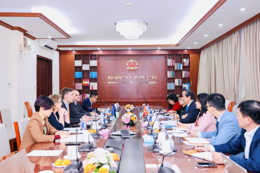 Ngoài nội dung quan trọng này, Bộ trưởng Nguyễn Kim Sơn và ông Julien Guerrier cũng trao đổi về các nội dung liên quan đến thúc đẩy hợp tác thông qua chương trình ERASMUS+; phối hợp tổ chức Diễn đàn giáo dục quốc tế trong kỷ nguyên số và Triển lãm giáo dục quốc tế; tăng cường hợp tác giữa các cơ sở giáo dục đại học, giáo dục nghề nghiệp của Châu Âu và Việt Nam…