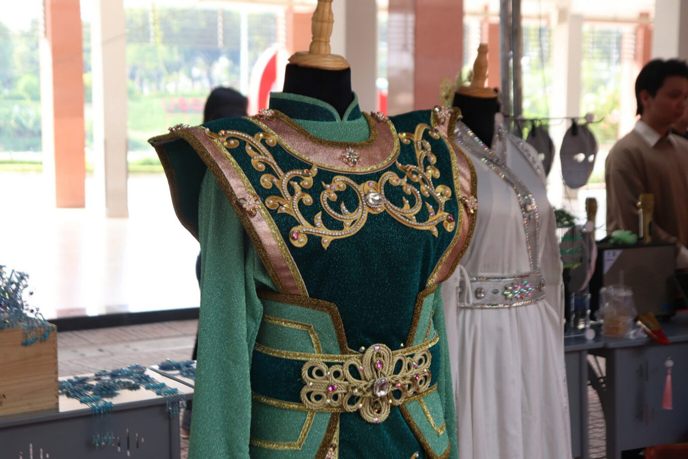 Không gian “Giao duyên”, triển lãm và hội chợ nghệ thuật diễn ra vào buổi chiều tại sân C, đã tạo nên điểm hẹn sôi động, với hơn 10 gian hàng nghệ thuật. Từ thư pháp, sách, vẽ chibi, sản phẩm thủ công đến mặt nạ Hát bội và trang phục sân khấu truyền thống, mỗi gian hàng không chỉ trưng bày mà còn kể câu chuyện sáng tạo, giúp người xem hiểu hơn về nghệ thuật và người làm nghệ thuật.