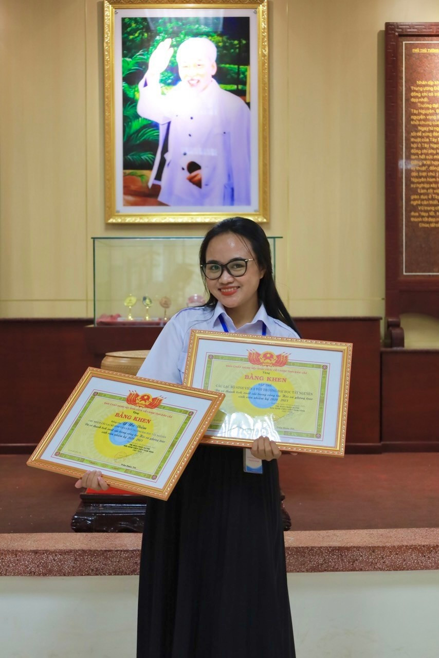 Y Un Diễm nhận danh hiệu “Sinh viên 5 tốt”. Ảnh: NVCC
