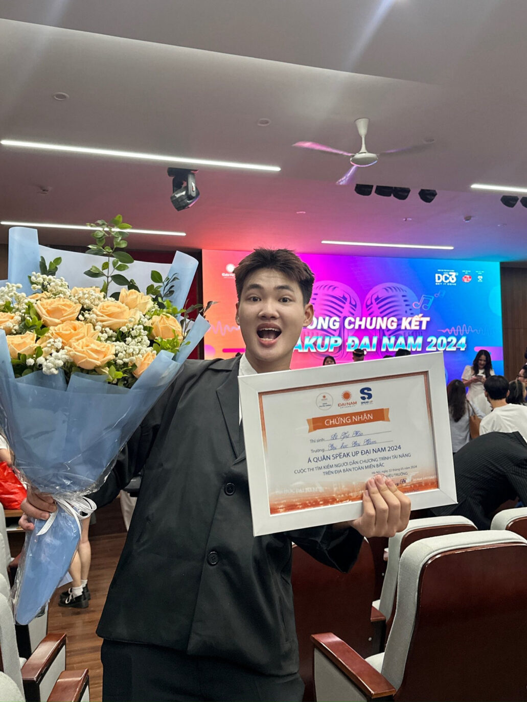 Khoảnh khắc Tự Hào tỏa sáng trên sân khấu cuộc thi SpeakUp Dainam 2024. Ảnh: NVCC
