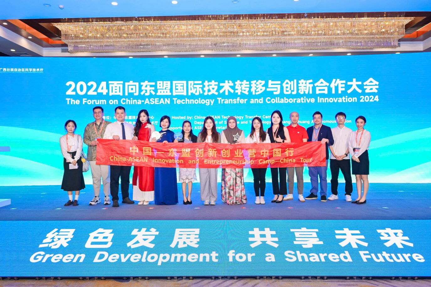 Thu Thủy (áo dài đỏ) trong lễ trao giải cuộc thi tại Nam Ninh – Trung Quốc. Ảnh: NVCC