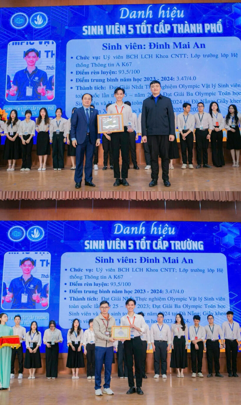 Với Mai An, các cuộc thi học thuật và hoạt động nghiên cứu khoa học không đơn thuần là thử thách năng lực, mà còn là quá trình rèn luyện tư duy. Anh cho rằng điều quan trọng không chỉ là “biết”, mà còn phải hiểu “vì sao” và “làm thế nào”. Chính cách tiếp cận này giúp anh thích nghi tốt hơn khi học các học phần chuyên ngành CNTT, từ phân tích dữ liệu, tối ưu hệ thống đến phát triển các mô hình trí tuệ nhân tạo.
