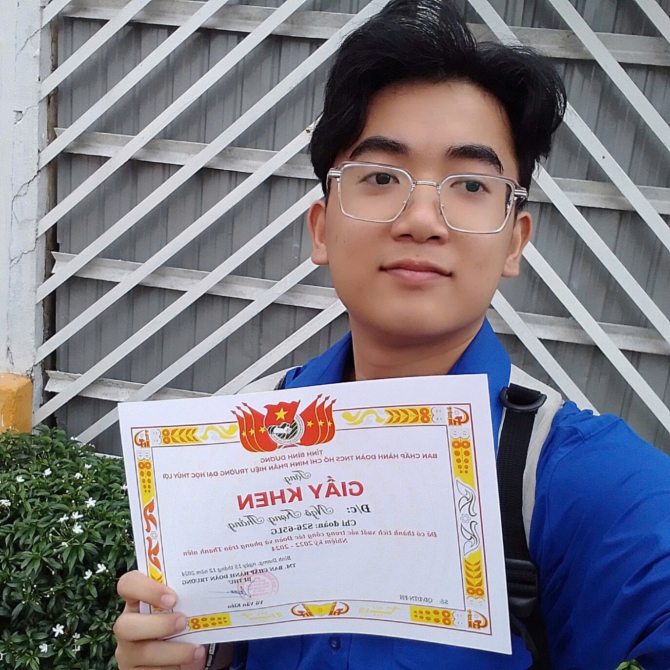 Trọng Thắng vinh dự nhận Giấy khen vì những đóng góp tiêu biểu trong công tác Đoàn và phong trào Thanh niên nhiệm kỳ 2022 – 2024. Ảnh: NVCC
